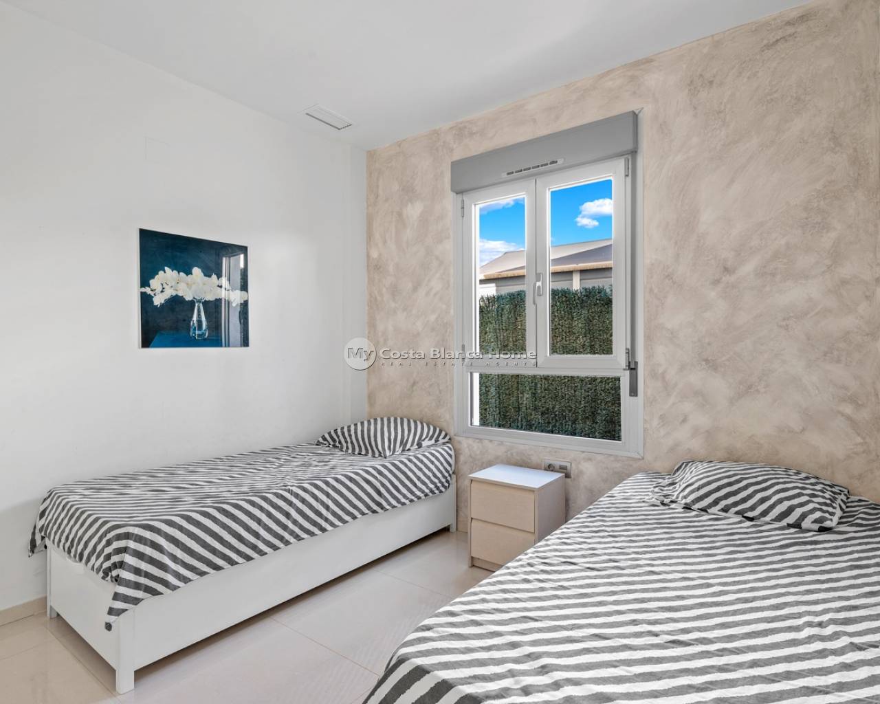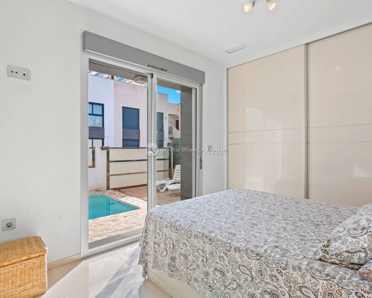 Discover this charming and welcoming single-story home, built in 2014, ideal for year-round living, as a second home, or as an investment property thanks to its tourist license. The house boasts 90 m² of living space on a 230 m² plot, offering a perfect balance between interior comfort and outdoor areas to fully enjoy the Mediterranean climate. It features three bedrooms and two bathrooms, with the master suite featuring a private bathroom and a large window overlooking the pool area, allowing for fantastic natural light throughout much of the day. Outside, the property captivates with its 73 m² private garden, a perfect space to relax, sunbathe, host meals with friends, or create a chill-out zone. The house also includes a private swimming pool, a true luxury for cooling off and enjoying complete privacy. Designed for comfort, the house includes awnings and two aluminum pergolas: one on the main terrace, ideal for al fresco dining in the shade, and another on the solarium, a privileged space to enjoy the sun year-round, read, have a drink at sunset, or simply unwind. Another major advantage is its south-facing orientation, which guarantees abundant natural light and a warm, inviting atmosphere throughout the day. It also features on-site parking, providing convenience and security. Located in a convenient and well-connected area, it is just a 5-minute walk from the nearest supermarket and only a 10-minute drive from Guardamar beach, one of the most highly regarded for its expansive sandy beaches and natural surroundings. This property has it all: privacy, natural light, outdoor spaces, a swimming pool, a solarium, and an excellent location, ready to be enjoyed from day one.
