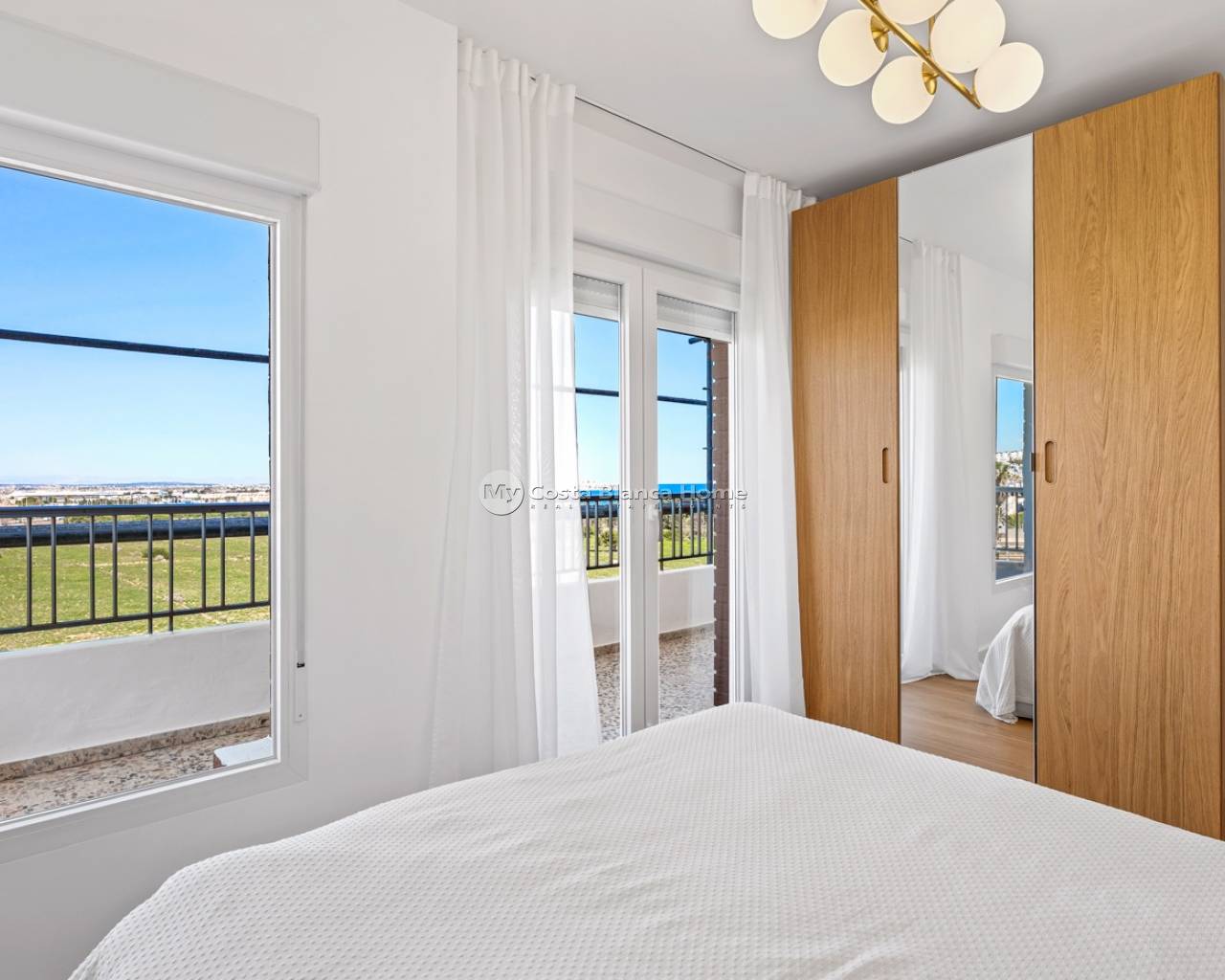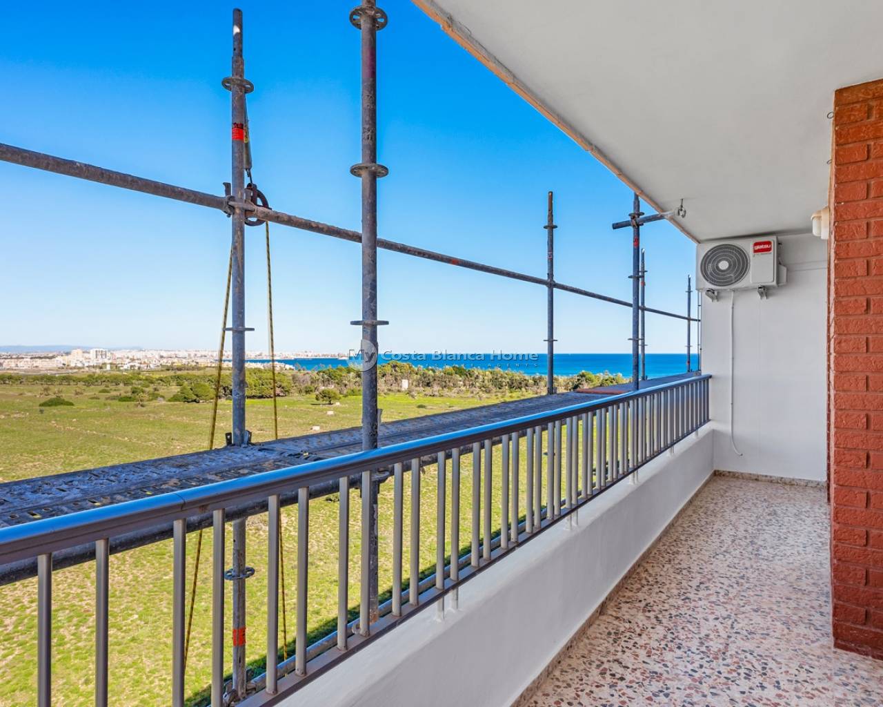 New opportunity on the market: a fully renovated corner penthouse on the 6th floor, just 500 meters from the sea, located in one of the most sought-after and promising areas of the Costa Blanca South. A rare find due to its combination of height, corner location, privacy, and completely unobstructed views—features typically found in much more expensive properties. Open Panoramic Views Views of the Mediterranean SeaClear sunrises and sunsetsNighttime panoramic views over the cityMountain viewsViews of the Torrevieja Salt Lakes Being a corner apartment on the top floor, it offers maximum natural light and cross ventilation. All rooms have direct access to the terrace, without interior patios, guaranteeing light, a spacious feel, and privacy. Main Features 70 m² built2 bedrooms1 bathroomCorner penthouse – 6th floorBuilding with elevatorCommunal swimming poolSoundproof panoramic windowsExcellent sound insulationRecently renovated Interior and finishes The apartment is delivered fully equipped and furnished with a modern and functional design: Designer furnitureNatural stone elementsLarge-format porcelain tilesIntegrated ambient LED lightingInverter air conditioning with Wi-Fi controlInduction hobDishwasherDirect Drive washing machineQLED Smart TVAlarm systemProgrammable boiler Added value for investors It has a valid tourist license, which can be transferred to the new owner, as licenses are granted in this building. This is a high-demand area for both national and international holiday rentals. Furthermore, the building is undergoing a complete facade renovation, a project already fully paid for, with no additional assessments for the new owner. Parking Enclosed and covered communal parking within the residential complex. Optional underground parking space for €10,000. Ready to move in or start generating income from day one!