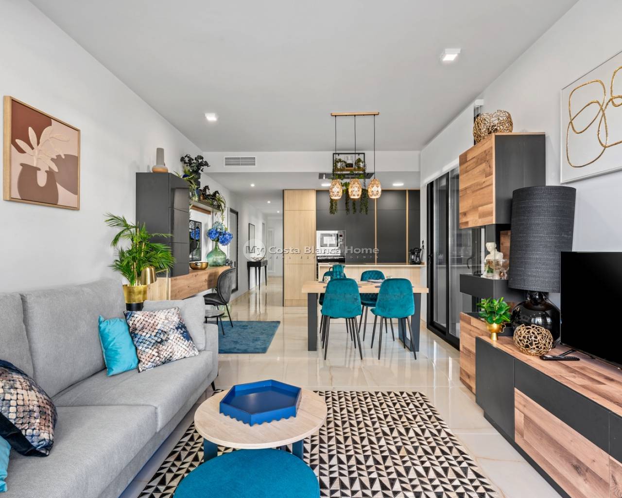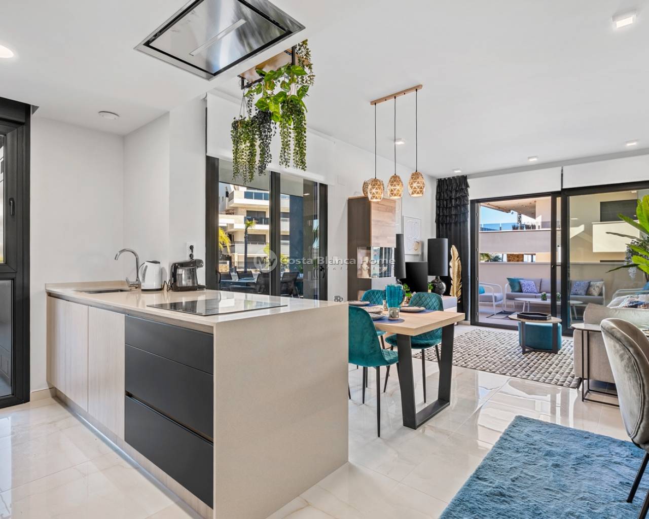 In one of the most sought-after areas of Playa Flamenca, in Orihuela Costa, we present this exclusive corner ground floor apartment within a newly built residential complex completed last year. A unique opportunity for those seeking quality, comfort, and a strategic location on the Costa Blanca. Situated just minutes from the beach and surrounded by all amenities—restaurants, bars, pharmacies, family leisure activities, and the renowned La Zenia Boulevard Shopping Centre—this property combines a Mediterranean lifestyle with excellent investment potential. The apartment features 3 bedrooms and 2 bathrooms, with a functional layout and high-quality finishes. The master bedroom has an en-suite bathroom with a bathtub. The second bathroom is separate and has a shower. Both bathrooms feature underfloor heating, providing added comfort year-round. All bedrooms have built-in wardrobes. The kitchen is fully equipped, and the property is sold furnished, except for decorative items, allowing you to move in immediately or rent it out without any additional investment. The overall feeling is one of spaciousness, light, and comfort, ideal as a primary residence, a second home, or an investment in one of the most sought-after international areas of the Costa Blanca. The true added value of this property is its spectacular 115 m² corner terrace. Its corner location provides greater privacy and a sense of spaciousness. From the terrace, you can enjoy partial sea views and direct access to the garden and the communal pool. It's the perfect space to create different outdoor areas: a chill-out zone, an al fresco dining area, or even a personalized relaxation space. Finding a ground-floor apartment with a terrace of this size in Playa Flamenca is rare, making this property a particularly attractive opportunity. The property is located in a luxury gated community offering comprehensive communal areas: Communal swimming poolBarbecue areaChildren's play areaGym equipped with state-of-the-art equipmentSaunaExtensive landscaped green areas The price also includes a double parking space and a large storage room, providing convenience and additional storage capacity. This property has all the key elements currently demanded by the market: recent construction, ample outdoor space, premium amenities, proximity to the beach and shopping areas, and a well-established location with high demand for both personal use and long-term or holiday rentals.
