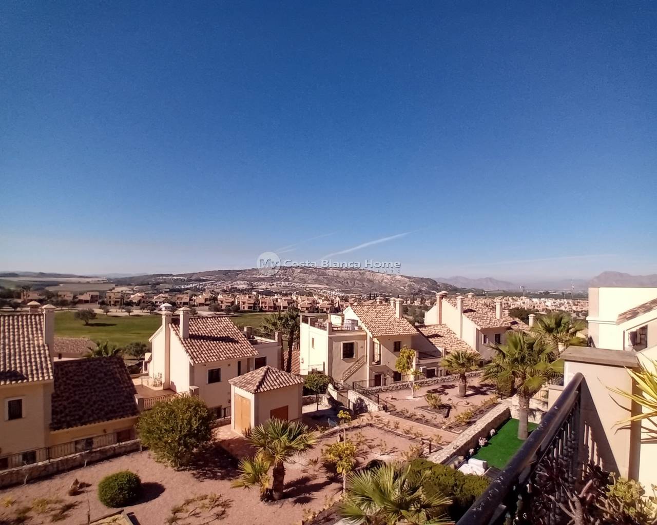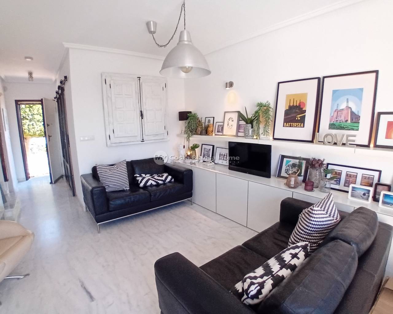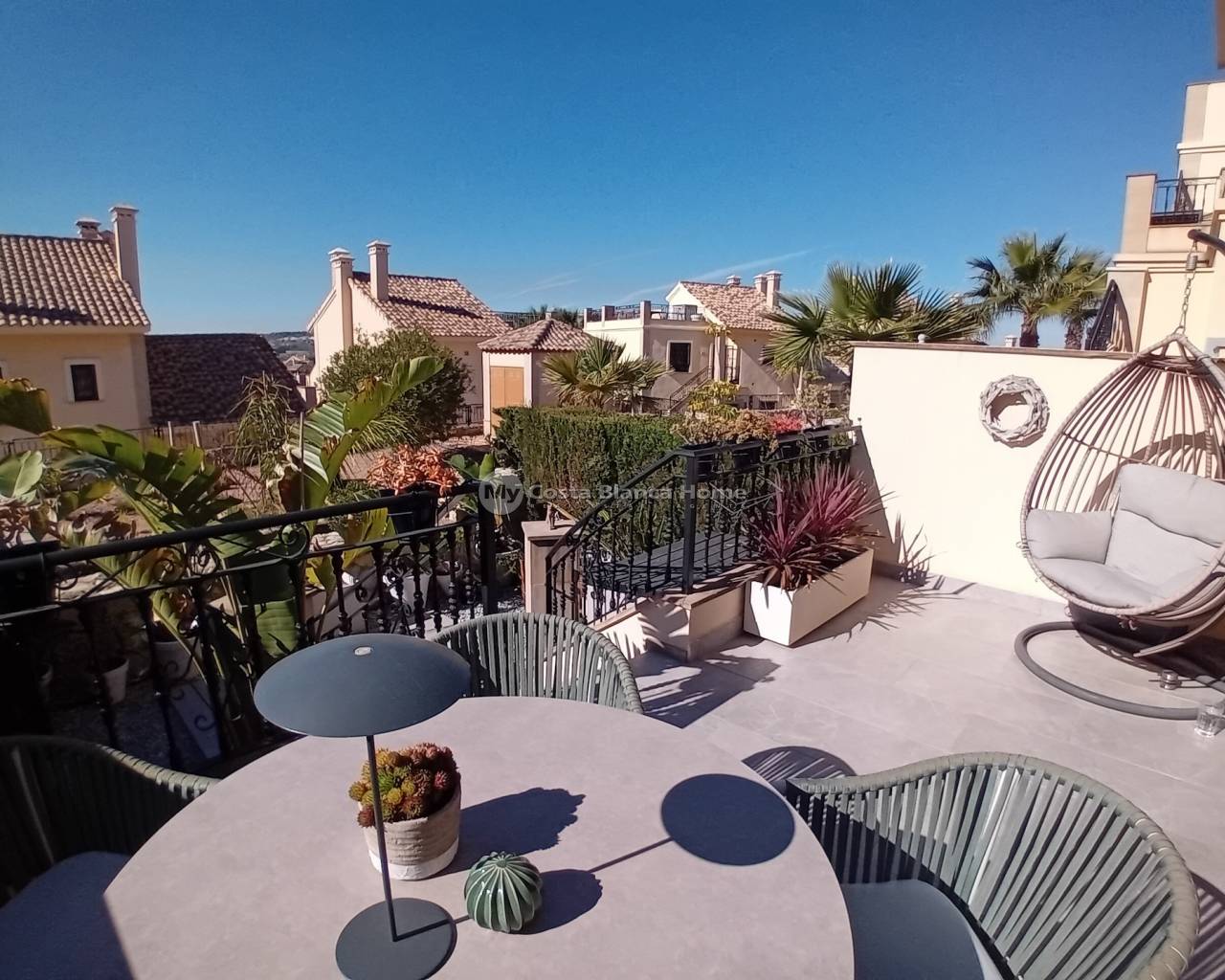 This are proud to present this beautifully renovated property on the prestigious La Finca Golf Resort, Algorfa. It is presented in pristine condition and has been upgraded to a very high standard by the current owners. KEY FEATURES MODERN KITCHEN WITH ALL APPLIANCES SOUTH-WEST FACING 2 DOUBLE EN-SUITE BEDROOMS GUEST CLOAK ROOM ON GROUND FLOOR TERRACE/GARDEN/ROOF GARDEN PARTLY FURNISHED COMMUNAL POOL CLOSE TO THE PROPERTY GATED COMMUNITY WITH PARKING The ground floor flows effortlessly with a modern, separate kitchen with feature doors, and fully equipped with all appliances. The open plan lounge diner is flooded with light and has a cleverly designed concealed storage cupboard and double width doors leading to the terrace. The terrace is a perfect spot for enjoying your morning coffee and breakfast. Steps lead down to a garden with a useful storage shed. The upper level of the property has 2 double en-suite bedrooms with built in wardrobes. Stairs from this level lead up to the roof garden with incredible views of the golf course, mountains and surrounding countryside. Properties like this are rare to the market and we highly recommend a viewing. Contact us to register your interest.