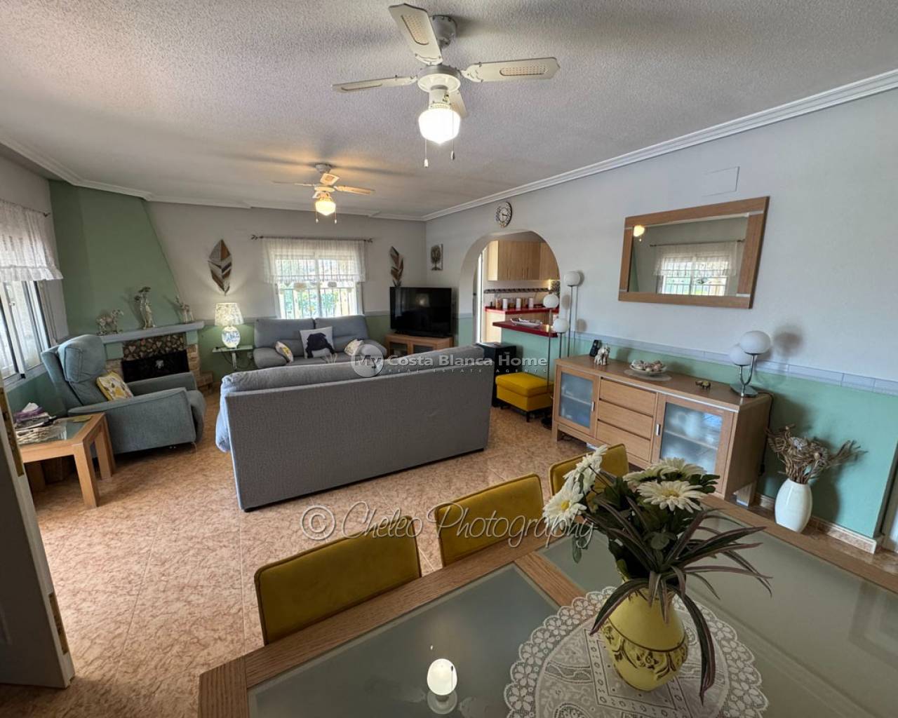The beautiful 140sq meters home consists of a very large living room with wood burning fireplace, 3 double bedrooms with fitted wardrobes, 2 bathrooms ( master bedroom en-suite), modernised fully fitted kitchen with separate utility room, large fully glazed porch with nice views to the swimming pool.